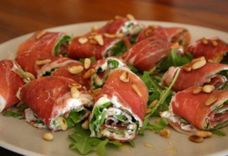 Тапас, рулетики из окорока с сыром «Риккота» и руколой